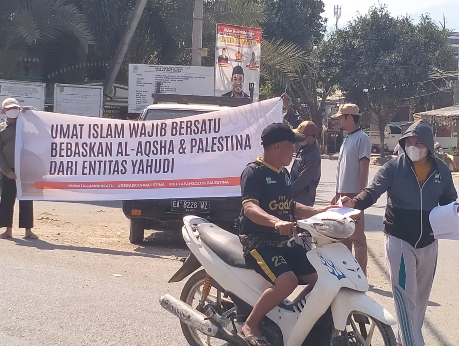 Salah satu spanduk yang mereka usung bertuliskan Umat Islam Wajib Bersatu Bebaskan Al-Aqsha dan Palestina dari Entitas Yahudi.[] Muhammad Aliansyah
