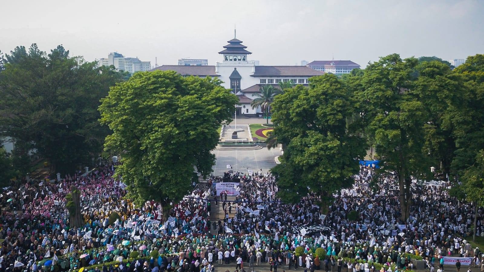 MediaUmat – Belasan ribu massa yang tergabung dalam Forum Ulama, Tokoh, dan Advokat (FUTA) Jawa Barat, menyerukan jihad dan khilafah solusi syar’i dan tuntas Palestina. Hal itu tampak dari berbagai spanduk dan poster yang diusung massa juga orasi para orator dalam Aksi Bela Palestina dari Pusdai ke Gedung Sate, Ahad (19/10/2025) di Kota Bandung.