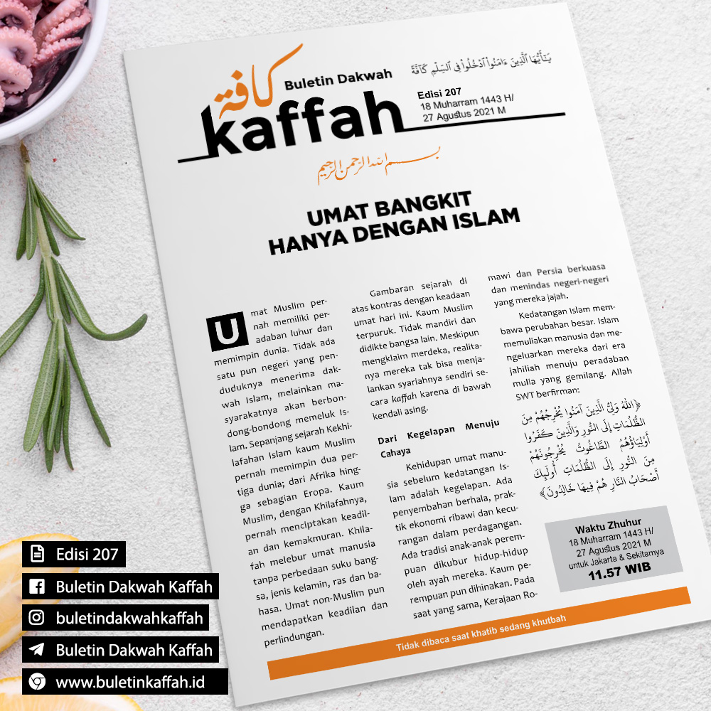 Allah adalah Pelindung orang-orang yang beriman. Dia mengeluarkan mereka dari kegelapan menuju cahaya (iman). Sebaliknya, orang-orang kafir, para pelindung mereka adalah thaghut, yang mengeluarkan mereka dari cahaya menuju kegelapan. Mereka adalah penghuni neraka. Mereka kekal di dalamnya (TQS al-Baqarah [2]: 257).