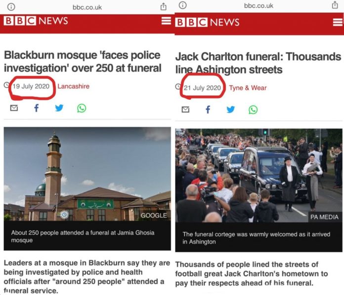 “Contoh kasus baru-baru ini adalah liputan para pelayat yang berbaris di jalan-jalan Ashington untuk memberikan penghormatan kepada mendiang Jack Charlton. Yang lainnya adalah perayaan Hari Kemenangan Eropa (VE Day) yang diberitakan secara luas tanpa mengacu pada risiko yang ditimbulkannya kepada orang-orang dan bahkan masyarakat luas yang ikut serta dalam perayaan itu.