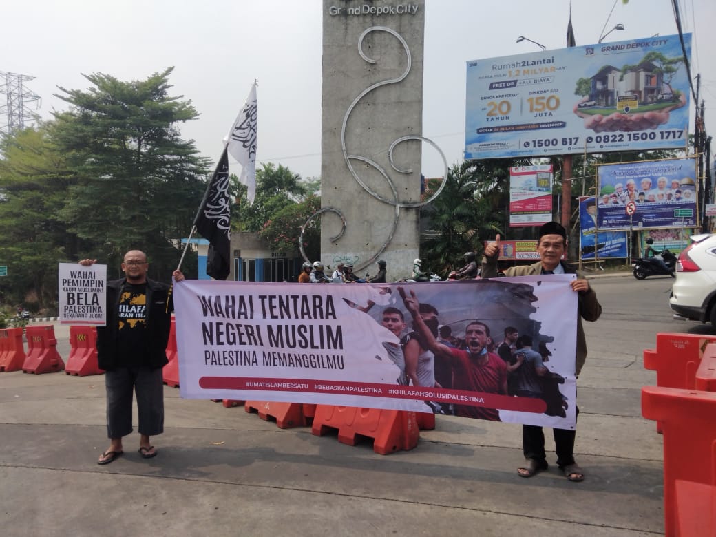 Selain seruan kepada penguasa, mereka juga membentangkan spanduk menyeru agar para tentara negeri Muslim berjihad membela Palestina.