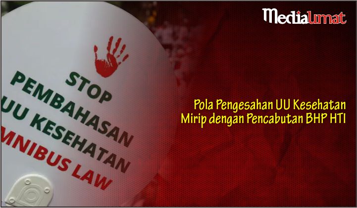 “Saya lihat pola pengesahan UU Kesehatan hampir sama dengan yang dilakukan terhadap HTI dan FPI (Front Pembela Islam) ketika mencabut badan hukum dan tidak memperpanjang SKT (Surat Keterangan Terdaftar),” tuturnya dalam diskusi PKAD: Kontroversi UU Kesehatan Ditunggangi HT1-FP1 Atau Oligarki? di kanal YouTube Pusat Kajian dan Analisis Data, Sabtu (15/7/2023).