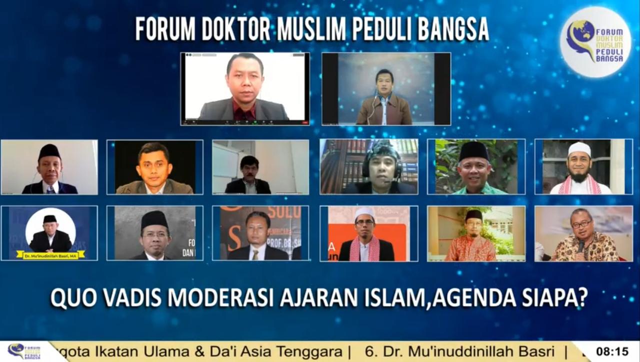 Demi membela Islam dan kepedulian yang tinggi terhadap kondisi umat Islam yang saat ini menghadapi berbagai makar dari Barat lewat sejumlah program yang mengarah pada ghazwul fikri dan ghazwuts-tsaqafi, Forum Doktor Muslim Peduli Bangsa (FDMPB) mengkaji lebih dalam berbagai hal terkait dengan perkembangan umat, termasuk rancangan moderasi ajaran Islam yang digagas oleh Kementerian Agama RI, dalam diskusi online via Zoom Meeting yang bertajuk Quo Vadis Moderasi Ajaran Islam, Agenda Siapa? pada Ahad 26 Juli 2020.
