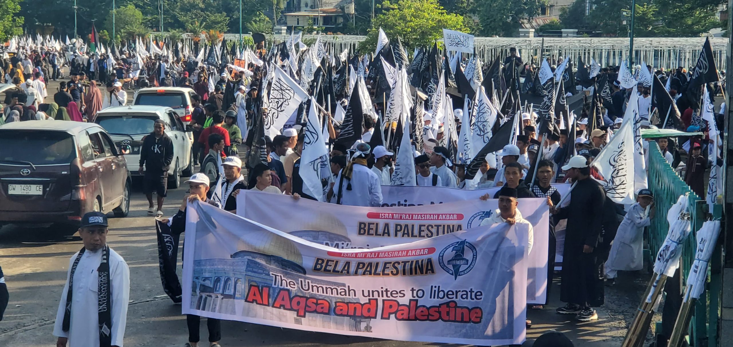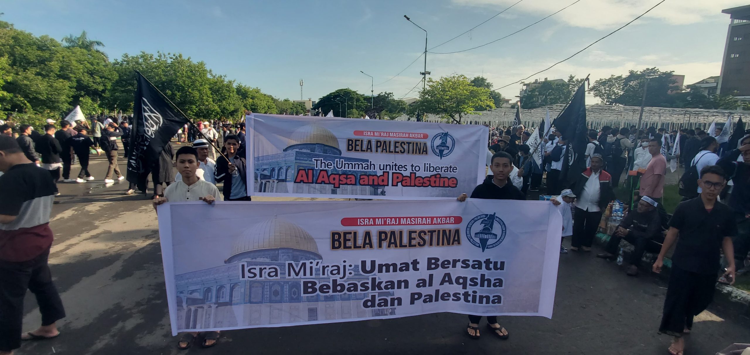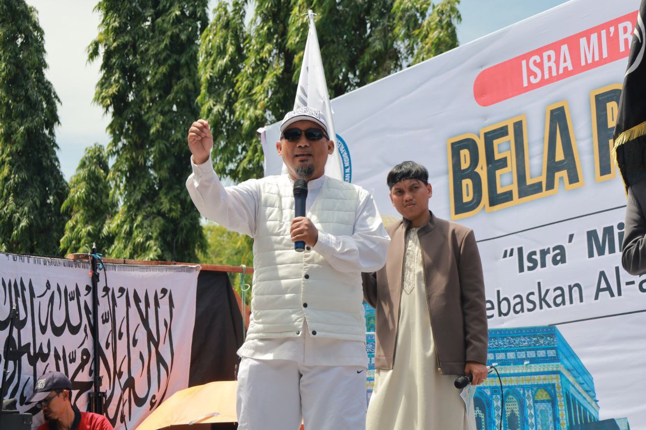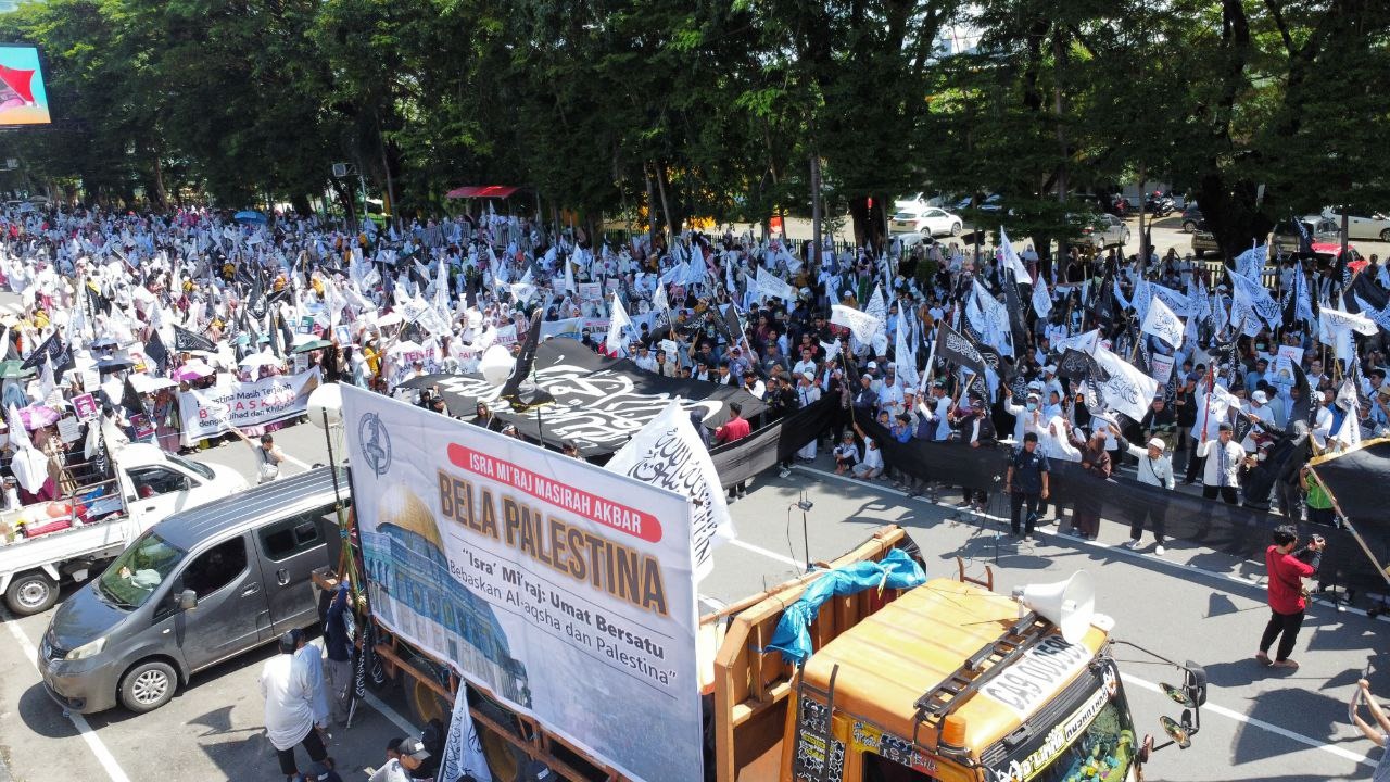 Dengan mengusung tema “Isra’ Mi’raj, Umat Bersatu Bebaskan Al-Aqsha & Palestina”, massa melakukan long march dari Masjid Al-Markaz Al-Islami menuju Monumen Mandala sebagai bentuk solidaritas terhadap perjuangan rakyat Palestina.