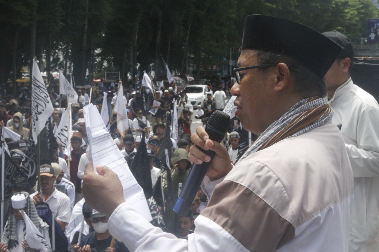 Selanjutnya Ustadz Barliantah Abdullah menyampaikan tuntutan agar para pemimpin negeri muslim mengirim tentara bebaskan Al Aqsha dan Palestina dari penjajahan Zionis Yahudi.