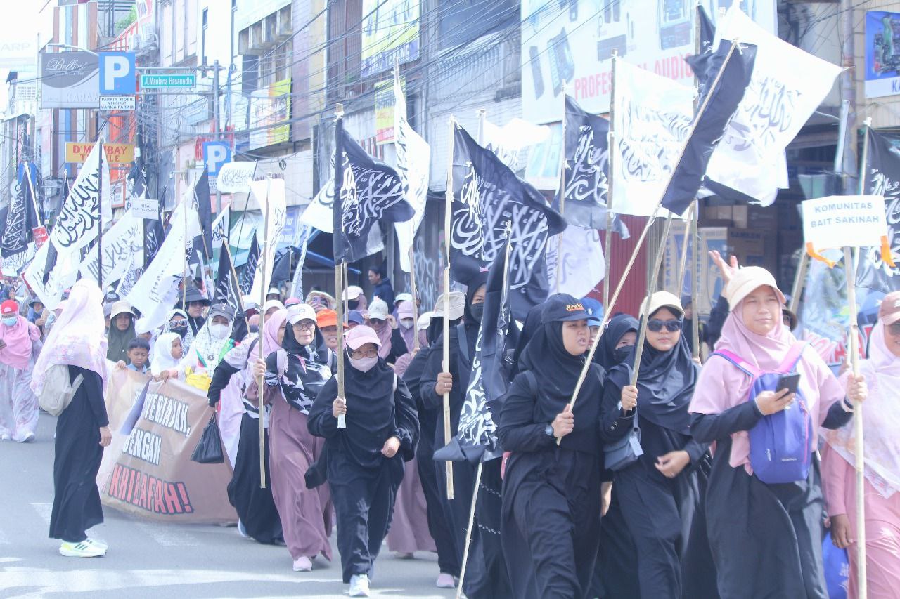 Selain orasi, sepanjang perjalanan juga diramaikan yel-yel. “Solusi Palestina, Jihad dan Khilafah. Solusi Palestina, Jihad dan Khilafah. Wahai para penguasa, bebaskan Palestina. Kirim para tentara, Jihad fisabilillah. Takbir!”[] Achmad Mu’it