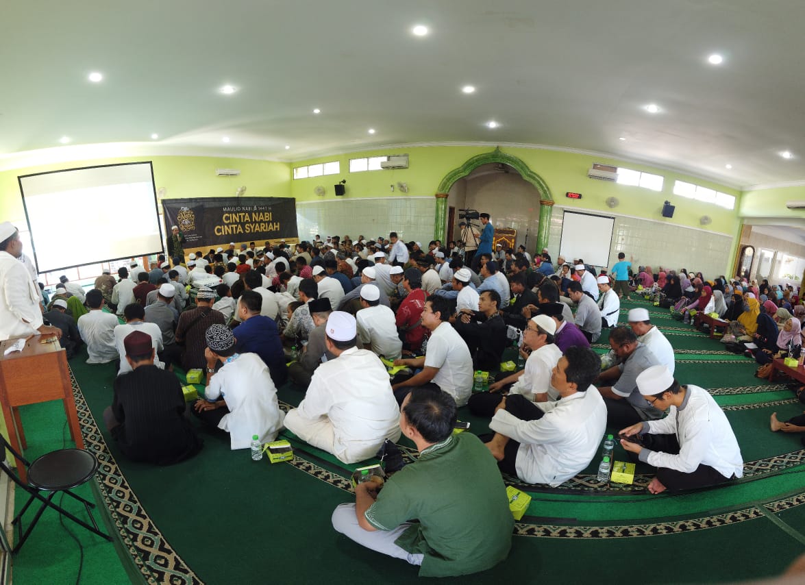 Seribuan warga Surabaya hadir dalam acara Tabligh Akbar Maulid Nabi Muhammad SAW 1441 H: Cinta Nabi Cinta Syariah, Ahad (10/11/2019) di salah satu masjid di Surabaya.