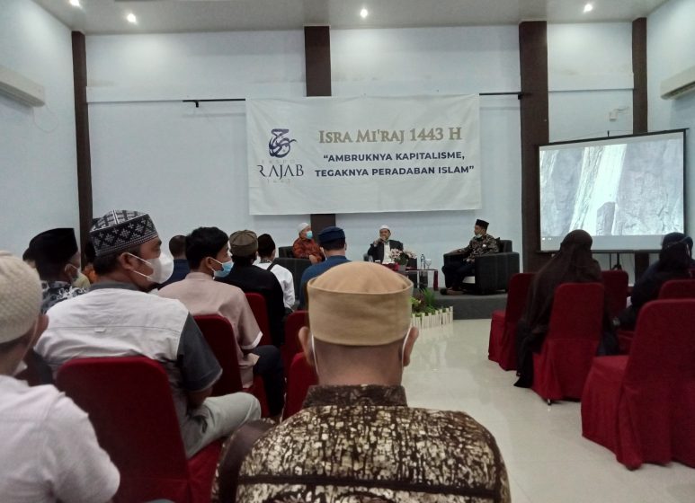 Shahibul bait Rajab Ekspo Ustad Muhsin, S.Th.I dalam sambutanya mengatakan Momentum Isra’ Mi’raj selain mengingatkan kita tentang shalat fardhu, kita juga tidak boleh lupa di bulan rajab ini terjadi peristiwa runtuhnya penjaga agama (Khilafah) yang ribuan tahun ada, akibatnya kehormatan ummat sekarang ini mudah diciderai tidak ada pelindungnya.