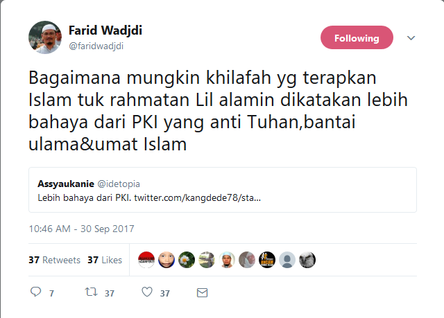 “Setelah Perppu (digunakan untuk mencabut SK Badan Hukum HTI, red) tidak boleh ada dakwah terbuka tentang khilafah. Bagaimana di negeri mayoritas Muslim, khilafah dilarang? Padahal khilafah yang membuat kita mengenal Islam!” tegasnya.
