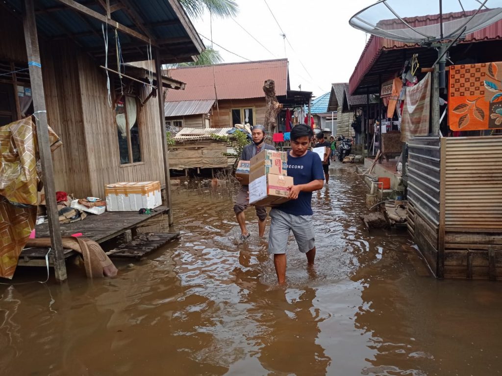 Ketinggian air yang mencapai hampir 2 meter membuat para wanita dan anak-anak diungsikan, sementara kaum pria bertahan dengan kondisi seadanya untuk memastikan harta benda yang tersisa tetap aman.