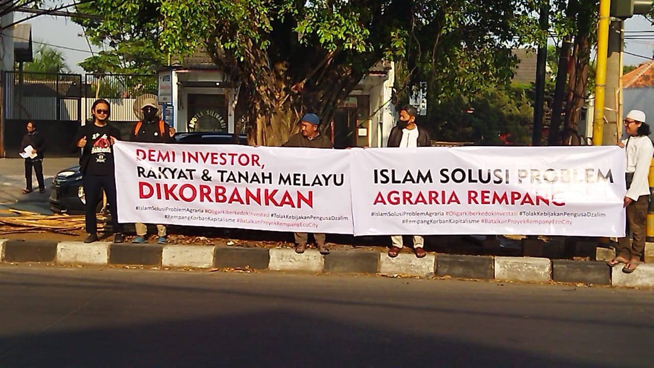 Selama bentang spanduk, mereka pun membagikan sebanyak 500 eksemplar selebaran yang isinya tentang solusi Islam atas masalah agraria.[] Ius T