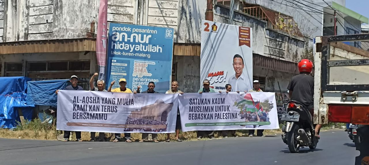 Aksi pembentangan spanduk membela Palestina juga dilakukan di pinggir jalan depan Masjid Besar Baiturrahim Kecamatan Dampit dan di beberapa titik lainnya.[] Anang Ubaidillah